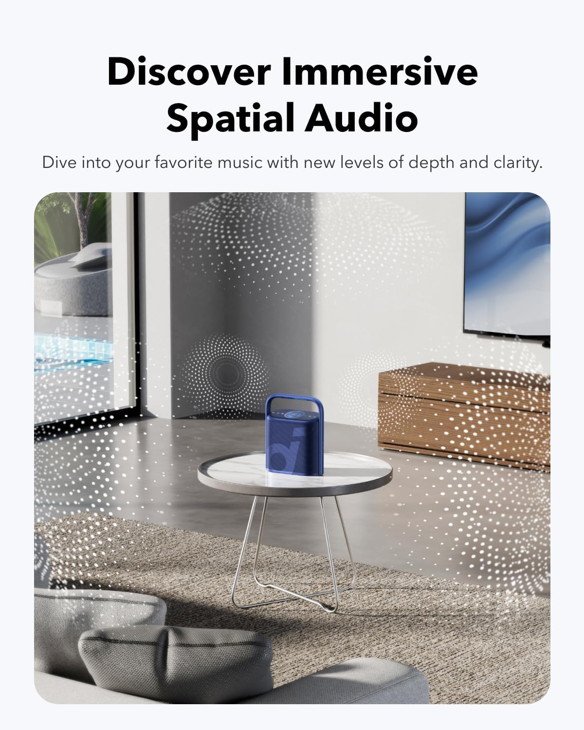 Dimenzija usmjerena prema gore dodaje zvuku dodatnu dimenziju, dok se ugrađeno ambijentalno svjetlo može podesiti putem aplikacije.