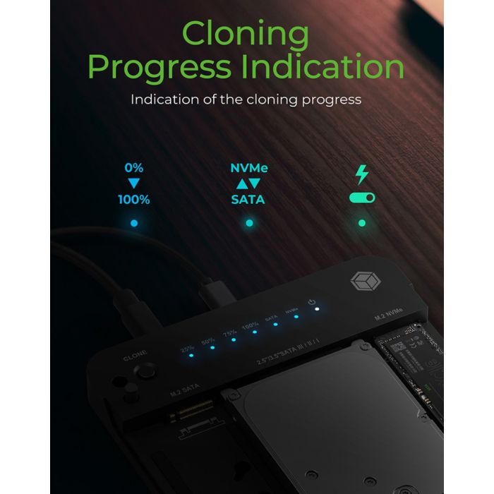 DVODMJERNO KLONIRANJE : Klonirajte s 2.5"/3.5" SATA HDD/SSD na M.2 PCIe NVMe SSD ili obrnuto, sve jednim dodirom gumba.