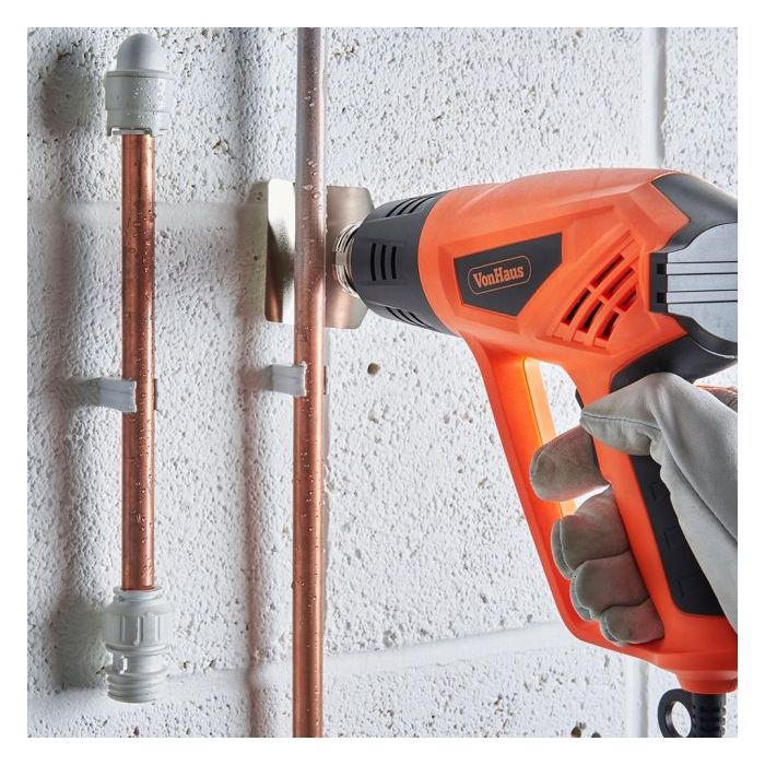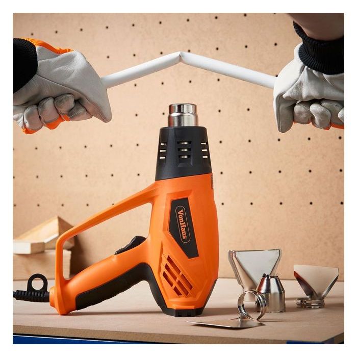 - Snažni VonHaus toplinski pištolj od 2000 W idealan je za „uradi sam“ majstore koji žele restaurirati i uklanjati boju, lijepiti, savijati bakrene cijevi, otpuštati zahrđale vijke, obnavljati roštilj i još mnogo toga.