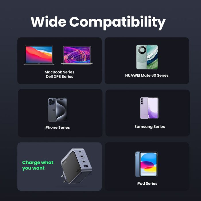 Važno vam je brzo i učinkovito punjenje vaših uređaja? UGREEN Nexode Air je odgovor na vaše potrebe! Punjač pruža 100 W snage i koristi napredni GaNInfinity čip, zahvaljujući kojem možete uživati ne samo u brzom, već i stabilnom i sigurnom napajanju za svoje uređaje. Kompatibilan je s uređajima popularnih marki, a zahvaljujući 4 priključka za punjenje, možete slobodno obnavljati energiju više uređaja istovremeno.