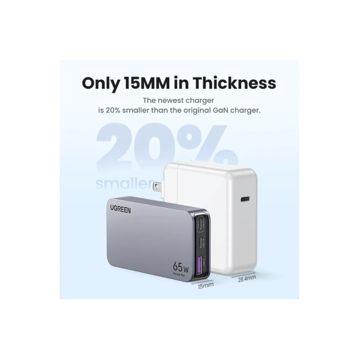 - Punjač UGREEN Nexode Pro, 65W, GaN, ultra-tanki, 3 porta