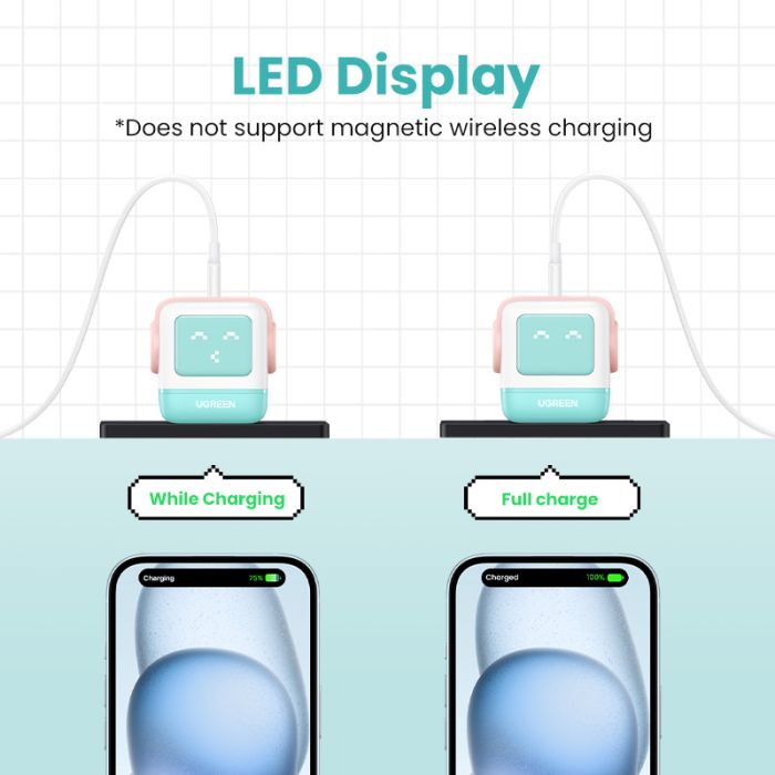 - Punjač UGREEN Nexode Robot, 65W, GaN, rozi