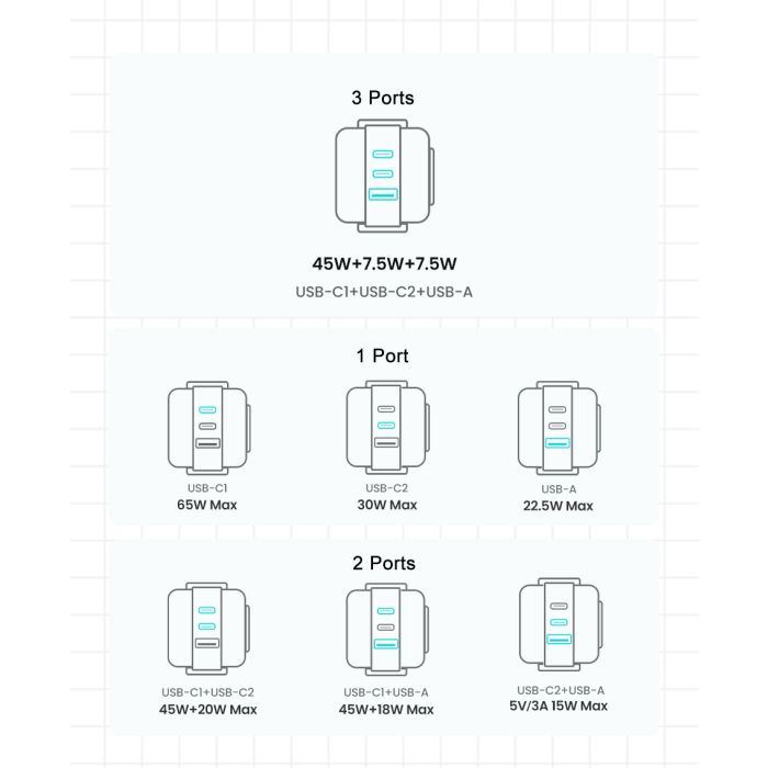 S 2 USB C priključka i 1 USB A priključkom, naš punjač je kompatibilan s raznim uređajima.