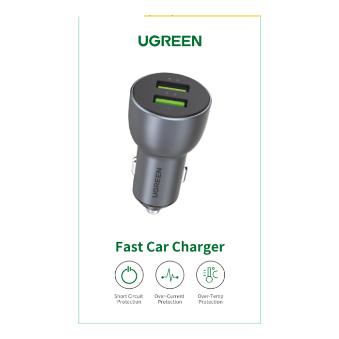 - Punjač UGREEN za automobil, 2x USB QC 3.0, 36W (10144), kutija