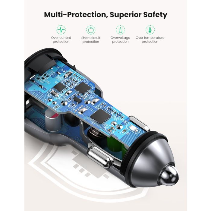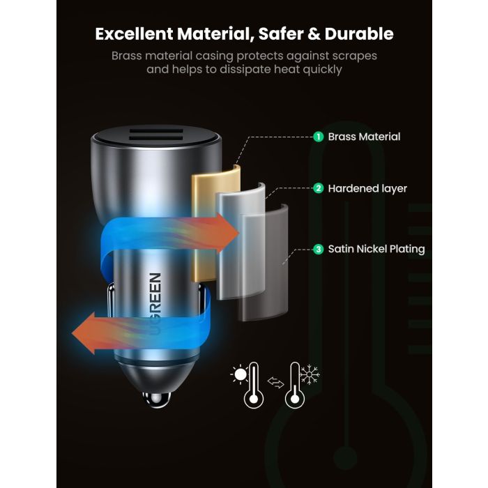 Mesingano kućište osigurava iznimnu izdržljivost adaptera, dok kompaktni dizajn omogućuje da adapter za automobil zauzima što manje prostora.