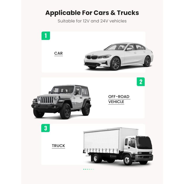 Pogodan je za napone 12V-24V tako da punjač radi s automobilima, kamionima, kombijima,..