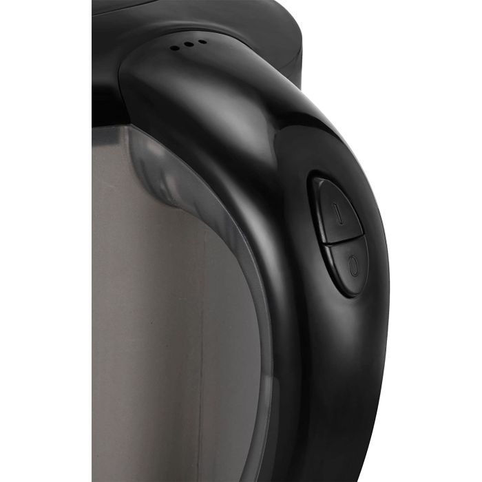 - Ima vodomjer, široki izljev, skriveni grijaći element i automatsku zaštitu od prekuhavanja vode.
