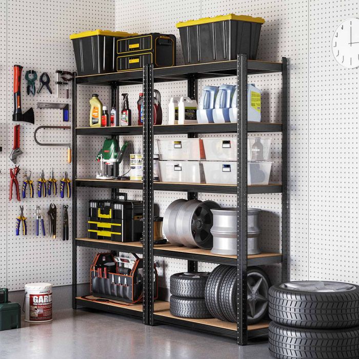 Čvrste police od iverice poduprte su čeličnim okvirom s dodatnim ojačanjima, svaka polica može podnijeti do 175 kg i sigurno podupirati boje, alate i fitness opremu.