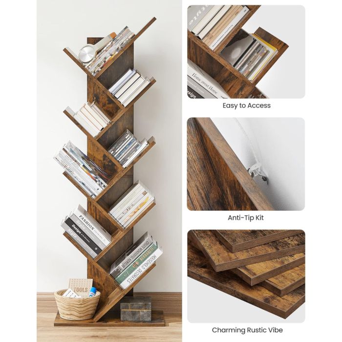 Pronađite savršenu kombinaciju funkcionalnosti i stila uz samostojeću policu za knjige VASAGLE . Industrijski dizajn kombinira rustikalne smeđe police s mat crnim metalnim okvirom, stvarajući topao, ali moderan kontrast. Pet prostranih polica pruža puno prostora za knjige, kutije, ukrase, biljke ili uredski pribor. Metalni okvir u obliku slova X na stražnjoj strani dodaje stabilnost, a podesive nožice osiguravaju savršeno postavljanje čak i na malo neravnim podovima. Polica za knjige idealna je za dnevne sobe, kućne urede, hodnike ili spavaće sobe.