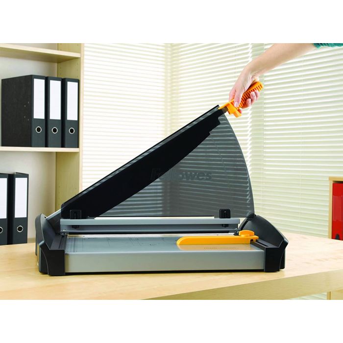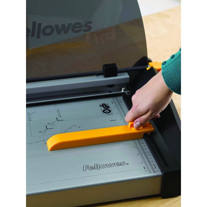 Giljotina Fellowes Plasma A3 idealna je za urede s velikom učestalošću rada. Reže do 40 listova odjednom i ima oštricu od nehrđajućeg čelika za veća opterećenja. Podesivi stražnji rub omogućuje precizno rezanje, dok držač papira sprječava zanošenje