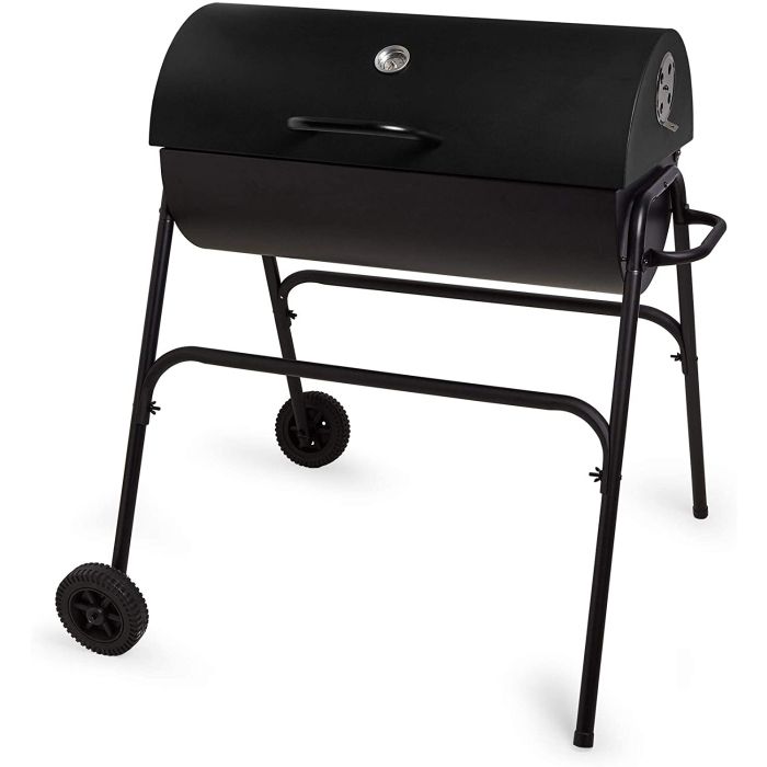 - Dizajn roštilja u obliku bačve ima duboki poklopac koji vam omogućuje zatvaranje ventilacije spuštenim poklopcem i korištenje kao roštilja za pušenje.