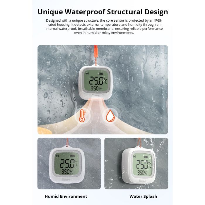 Jedinstveni strukturni dizajn omogućuje zaštitu središnjeg senzora kućištem s certifikatom IP65. Osjeća vanjsku temperaturu i vlažnost putem unutarnje vodootporne i prozračne membrane, osiguravajući pouzdan rad čak i u vlažnim ili maglovitim uvjetima.Jednostavno pregledajte povijesne podatke o temperaturi i vlažnosti