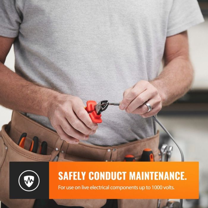 - Set od 15 dijelova s VDE oznakom uključuje kliješta i odvijače za siguran i učinkovit rad s električnim alatima do 1000 V.