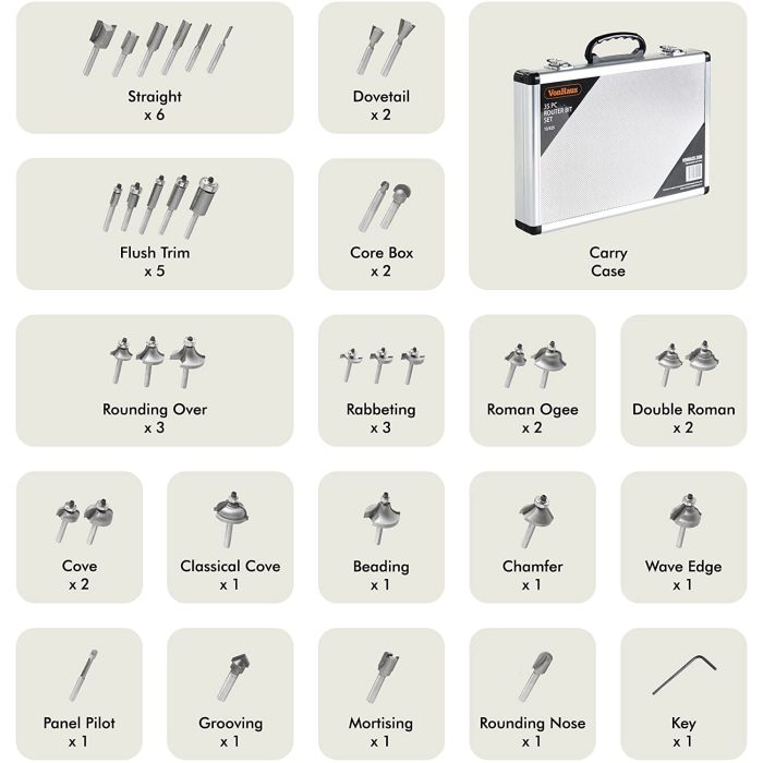 - Ovaj sveobuhvatni set, koji sadrži 35 komada navojnih glodala od volframovog karbida (TCT), omogućuje vam stvaranje širokog raspona mogućnosti obrezivanja.