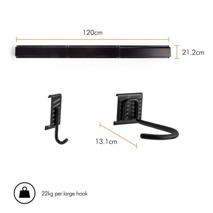 - Stvorite idealno rješenje za pohranu s nosivošću do 25 kg na većoj kuki i 20 kg na manjoj kuki.