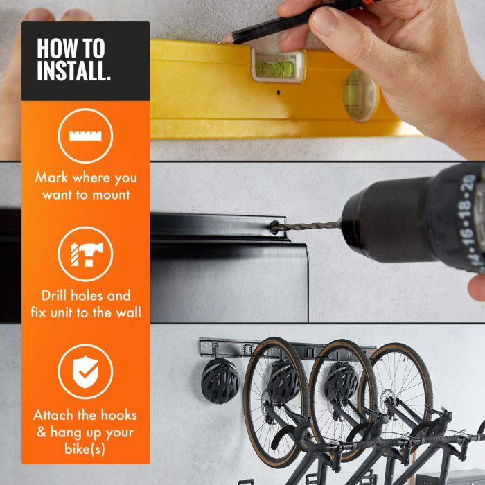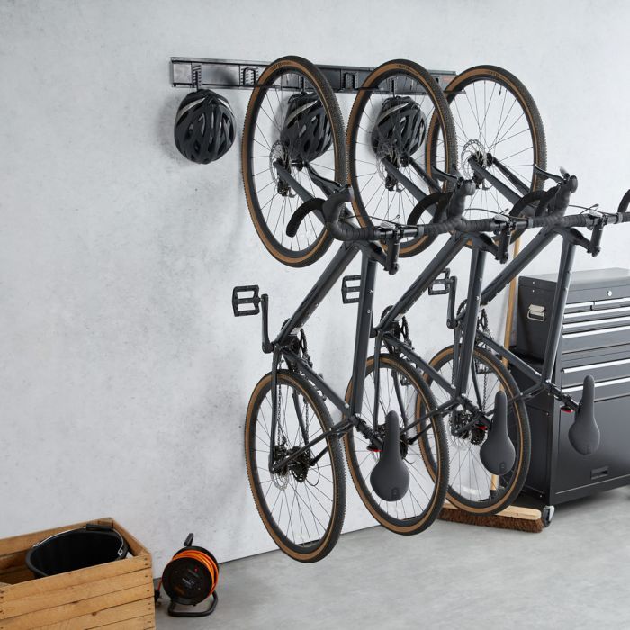 - Oslobodite prostor na podu iskorištavanjem prostora na zidu s 9-dijelnim setom za pohranu bicikala.