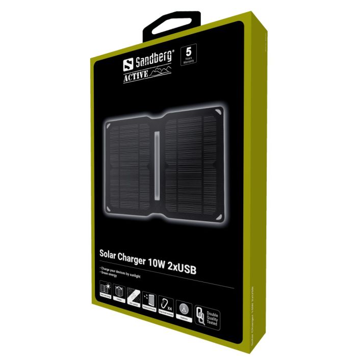Sandberg Solar Charger 10W 2xUSB je visoko učinkovita solarna ćelija koja pretvara sunčevu svjetlost u električnu energiju. Punjač ima USB priključke koje možete koristiti za punjenje uređaja, poput pametnog telefona, tableta ili powerbanka. Kada spojite solarni punjač na powerbank, tamo možete pohraniti električnu energiju kako biste kasnije napunili svoj pametni telefon ili ga možete koristiti kao stabilizirajuće sučelje tijekom punjenja (ako vaš powerbank omogućuje istovremeno punjenje i napajanje). Izlazi Pomoću priloženih kopči možete, na primjer, pričvrstiti solarni punjač na ruksak kada idete u avanturu. Zelena energija za vašu opremu!