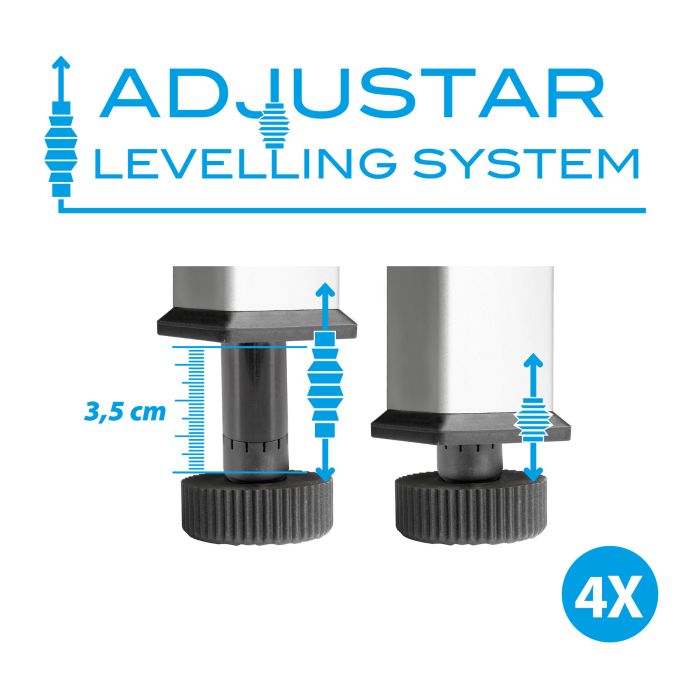 146 x 70 x V72.5 cm 149 x 32 x 14.5 cm težina: 8.3 kg maks. nosivost: 30 kg Materijal: Aluminij