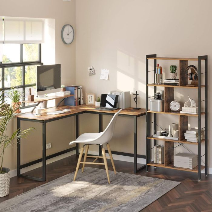 - Stol VASAGLE ALINRU, računalni, L-oblikovan, kutni, za monitor, rustikalno smeđi