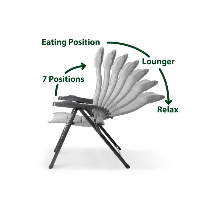 Moderna sklopiva vanjska stolica s 4 noge i naslonom koji se može podesiti u 7 stupnjeva.