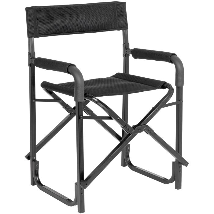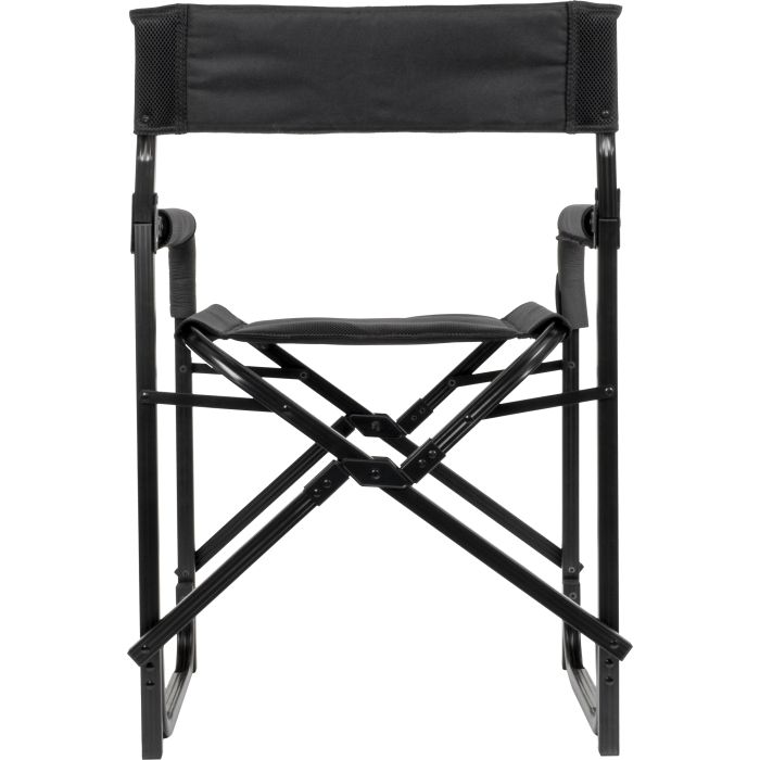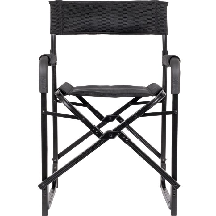 Direktorska stolica s klasičnim pravokutnim okvirom izrađenim od aluminija s praškastim premazom. Ušteda prostora zahvaljujući sklopivom naslonu. Sjedalo je izrađeno od prozračne 3Durafeel tkanine. Podstavljeni i tapecirani nasloni za ruke. Vrlo kompaktna i jednostavna za pohranu kada je zatvorena.