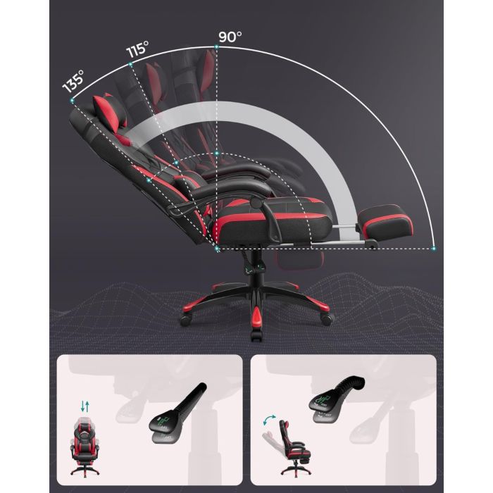 Doživite vrhunsku udobnost s višenamjenskom stolicom SONGMICS OBG77BR , dizajniranom za one koji puno vremena provode ispred računala - bilo da rade, uče ili se igraju. Sa svojim sportskim crno-crvenim dizajnom, podesivim naslonom (od 90° do 135°), produživom bazom i dodatnim jastucima za vrat i lumbalni dio, pruža ergonomsku potporu i opuštanje. Presvlaka od umjetne kože u kombinaciji s prozračnim tekstilnim površinama osigurava udobnost i jednostavno održavanje, dok punjenje od pjene visoke gustoće i robusna baza osiguravaju izdržljivost. Stolica omogućuje rotaciju od 360°, podesiva je po visini i ima tihe kotačiće prikladne za sve vrste podova.
