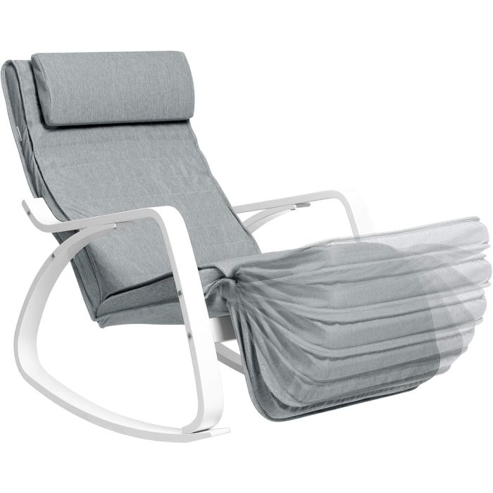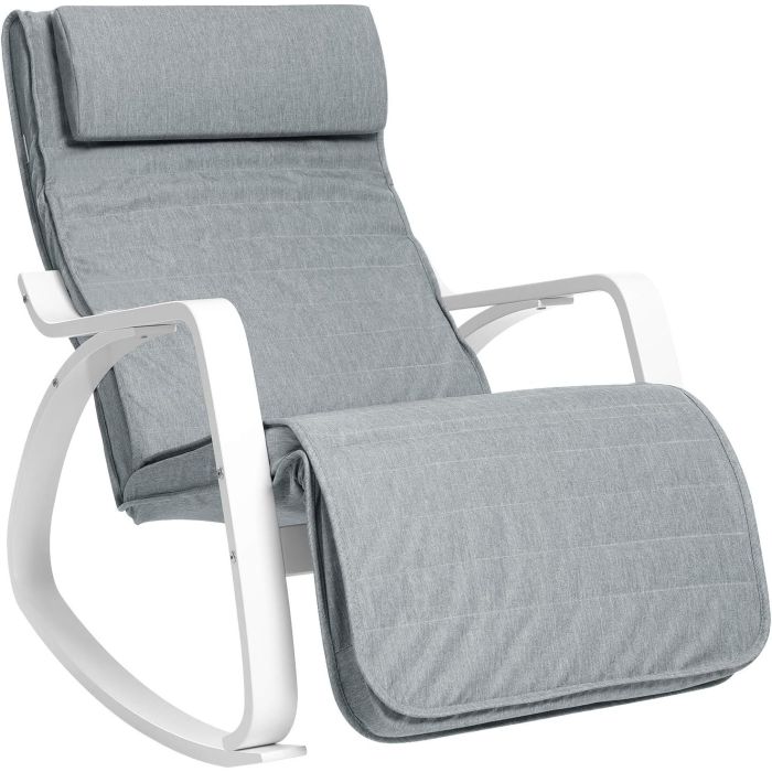 SONGMICS ljuljačka stolica od breze - podesivi oslonac za noge, do 150 kg, svijetlosiva / bijela