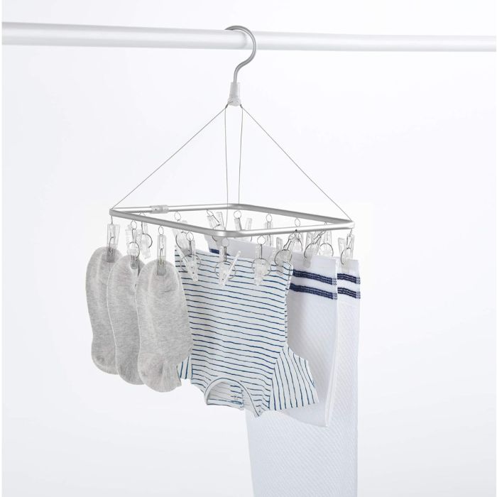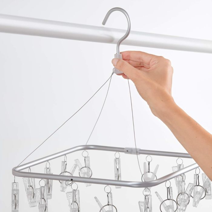 Praktično i kompaktno rješenje za sušenje manjih komada rublja - aluminijski stalak za sušenje Rayen 0337 omogućuje vam vješanje do 16 komada odjeće u malom prostoru. Idealan za čarape, donje rublje i dječju odjeću. Zahvaljujući rotirajućem sustavu i ugrađenoj vješalici, lako ga možete objesiti na konopac, balkon ili radijator - i u zatvorenom i na otvorenom.