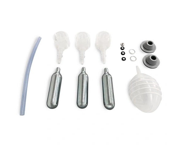 Isporuka uključuje crijevo za pivo, Heineken adapter, 3 CO₂ patrone, pumpu za čišćenje i još mnogo toga - sve što vam je potrebno za trenutnu upotrebu.