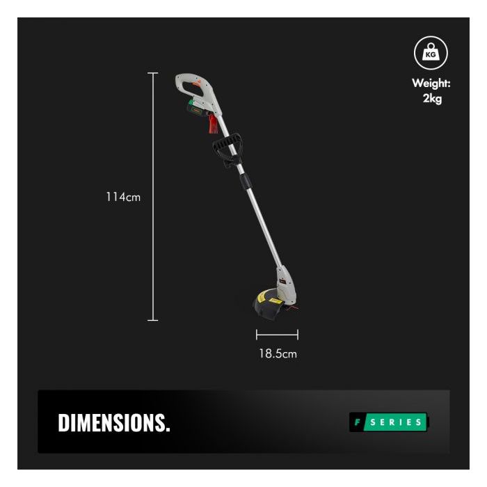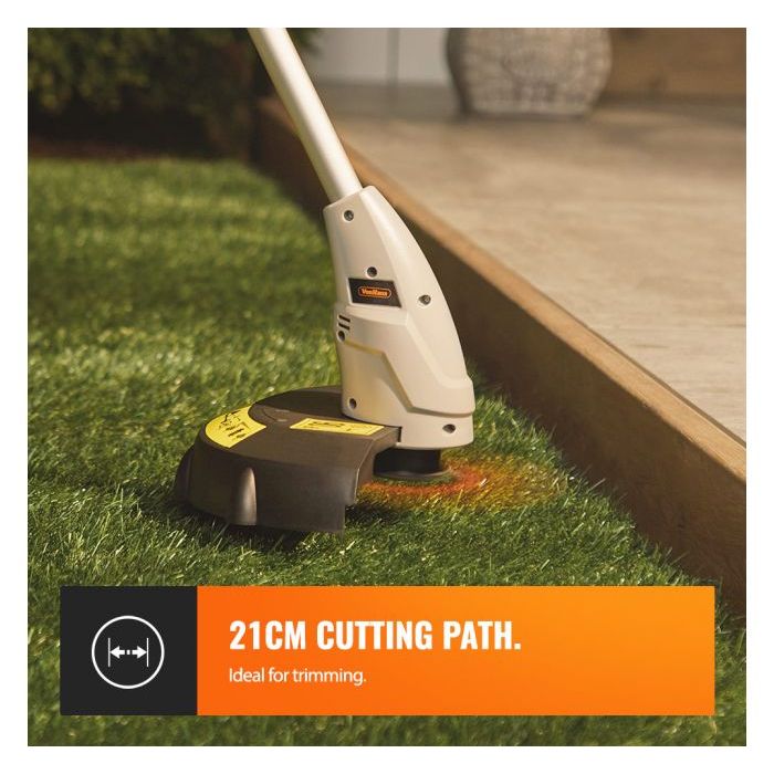 Lagana i kompaktna bežična kosilica VonHaus serije F nezamjenjiv je vrtni alat. Napaja se litij-ionskom baterijom od 12 V MAX 2,0 Ah i teži samo 2 kg.