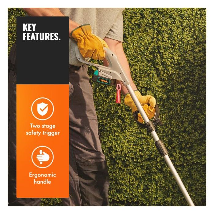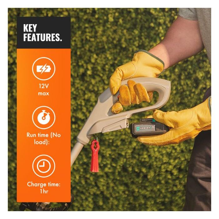 Uključuje bežični trimer VonHaus F-Series, litij-ionsku bateriju 12V MAX 2.0Ah, punjač baterije i 12 zamjenskih oštrica.