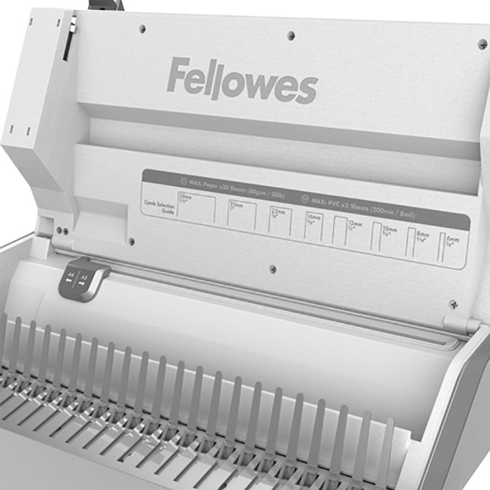 - Uvezuje dokumente plastičnom spiralom kapaciteta do 300 listova i spiralnim bušenjem do 20 listova. Prihvaća spirale širine do 38 mm.