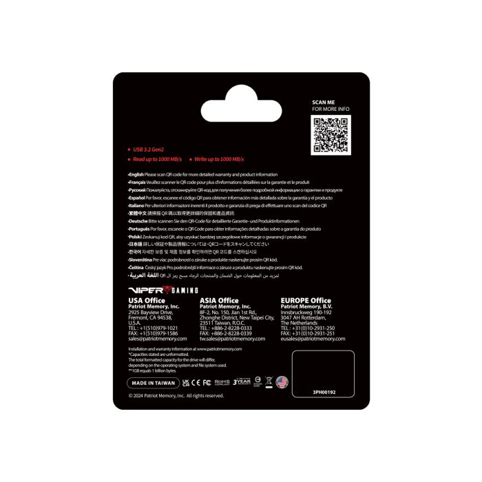 - Vanjski SSD disk 1TB, PATRIOT Viper PVP30, Compact, prijenosni, DUO