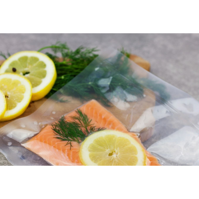Ove visokokvalitetne vakuumske vrećice dizajnirane su za pouzdano i sigurno skladištenje hrane. Njihova glatka površina, stabilan zavar i visoka otpornost na kidanje čine ih izvrsnim izborom za svakodnevnu upotrebu, kao i za zahtjevnije postupke poput Sous Videa. Učinkovito štite hranu od isušivanja i smrzavanja, pomažući u očuvanju svježine, okusa i teksture.